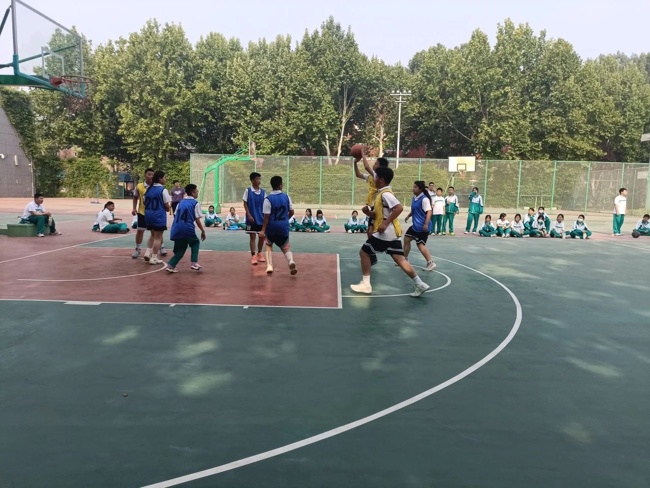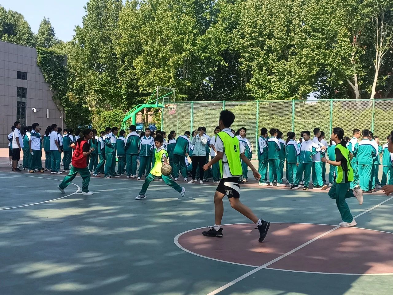 比賽首日,各班級(jí)代表隊(duì)便展現(xiàn)出強(qiáng)勁實(shí)力?厍蚝笮l(wèi)靈活運(yùn)球,巧妙穿梭于防守隊(duì)員之間;前鋒隊(duì)員快速突破,上演精彩的三步上籃;中鋒則在籃下嚴(yán)防死守,守護(hù)己方籃板。