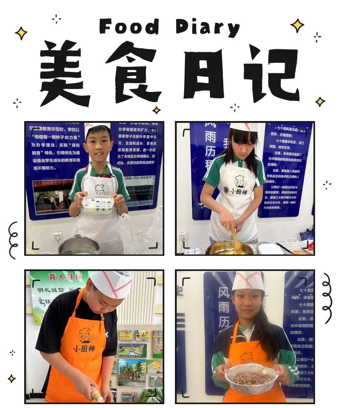 “看我的可樂雞翅!”、“嘗嘗我的柿子椒炒肉!” 孩子們高舉作品,滿臉驕傲。在 “美食分享會(huì)” 上,大家相互品嘗、點(diǎn)評(píng),從食材搭配到火候把控,盡顯專業(yè)風(fēng)范。