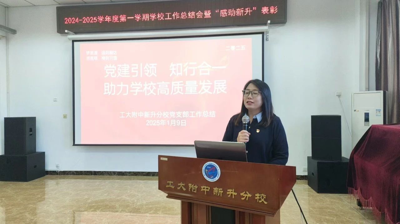 日月其邁,時(shí)盛歲新。工大附中新升分校始終堅(jiān)守教育初心,以黨建引領(lǐng)為核心,堅(jiān)定不移地落實(shí)“立德樹人”根本任務(wù),以新生態(tài)、新生活、新生長(zhǎng)為主線,聚焦“宜學(xué)新升”建設(shè),在傳承中守正創(chuàng)新,于實(shí)踐中強(qiáng)實(shí)人才隊(duì)伍,實(shí)現(xiàn)了學(xué)校高質(zhì)量發(fā)展的新跨越。為總結(jié)經(jīng)驗(yàn)、梳理成績(jī)、反思問題、改進(jìn)提升,2025年1月9日,學(xué)校召開了2024-2025學(xué)年度第一學(xué)期工作總結(jié)大會(huì),本次會(huì)議由徐宏宇主任主持。