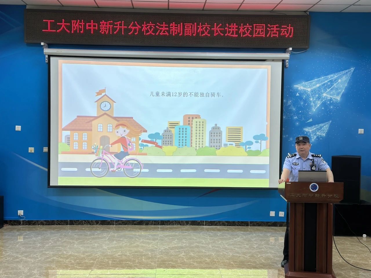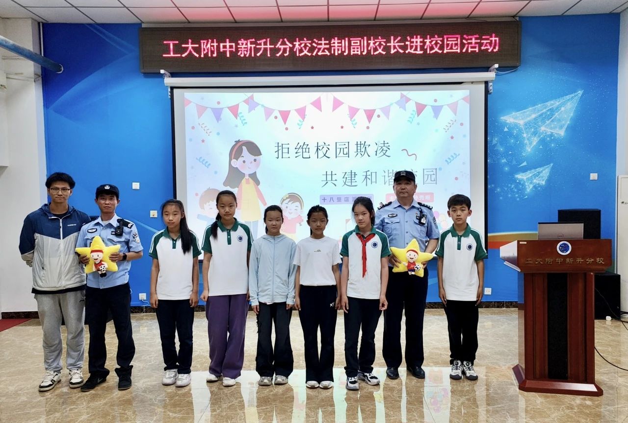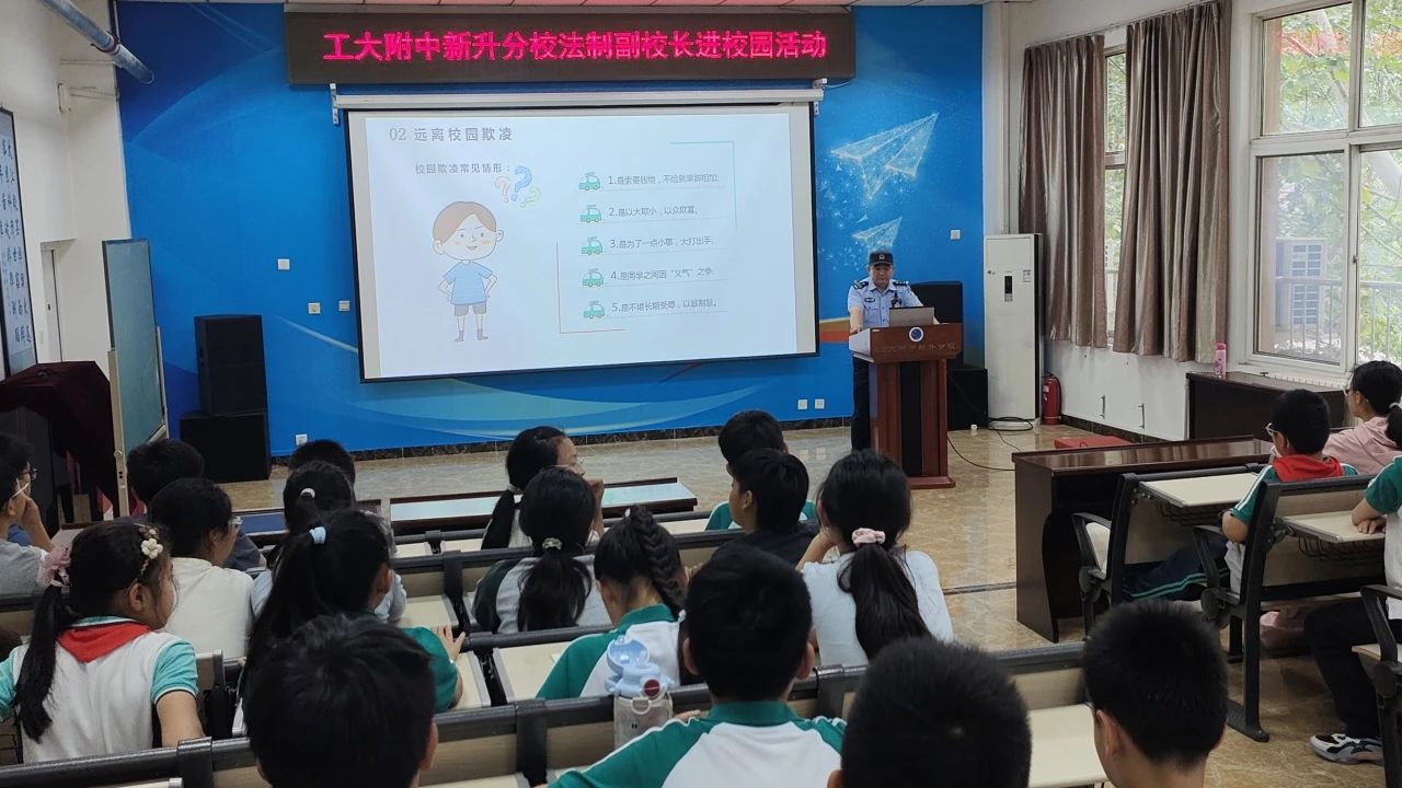 為進(jìn)一步加強(qiáng)校園法治教育,提高學(xué)生的法律意識(shí)和自我保護(hù)能力,營(yíng)造平安和諧的校園環(huán)境,5月22日,工大附中新升分校邀請(qǐng)十八里店派出所民警、學(xué)校法制副校長(zhǎng)孫秀明走進(jìn)校園,開(kāi)展了一場(chǎng)以 “法治護(hù)航成長(zhǎng) 安全伴我同行” 為主題的法治教育講座,為全校師生帶來(lái)了一堂生動(dòng)實(shí)用的普法教育課。