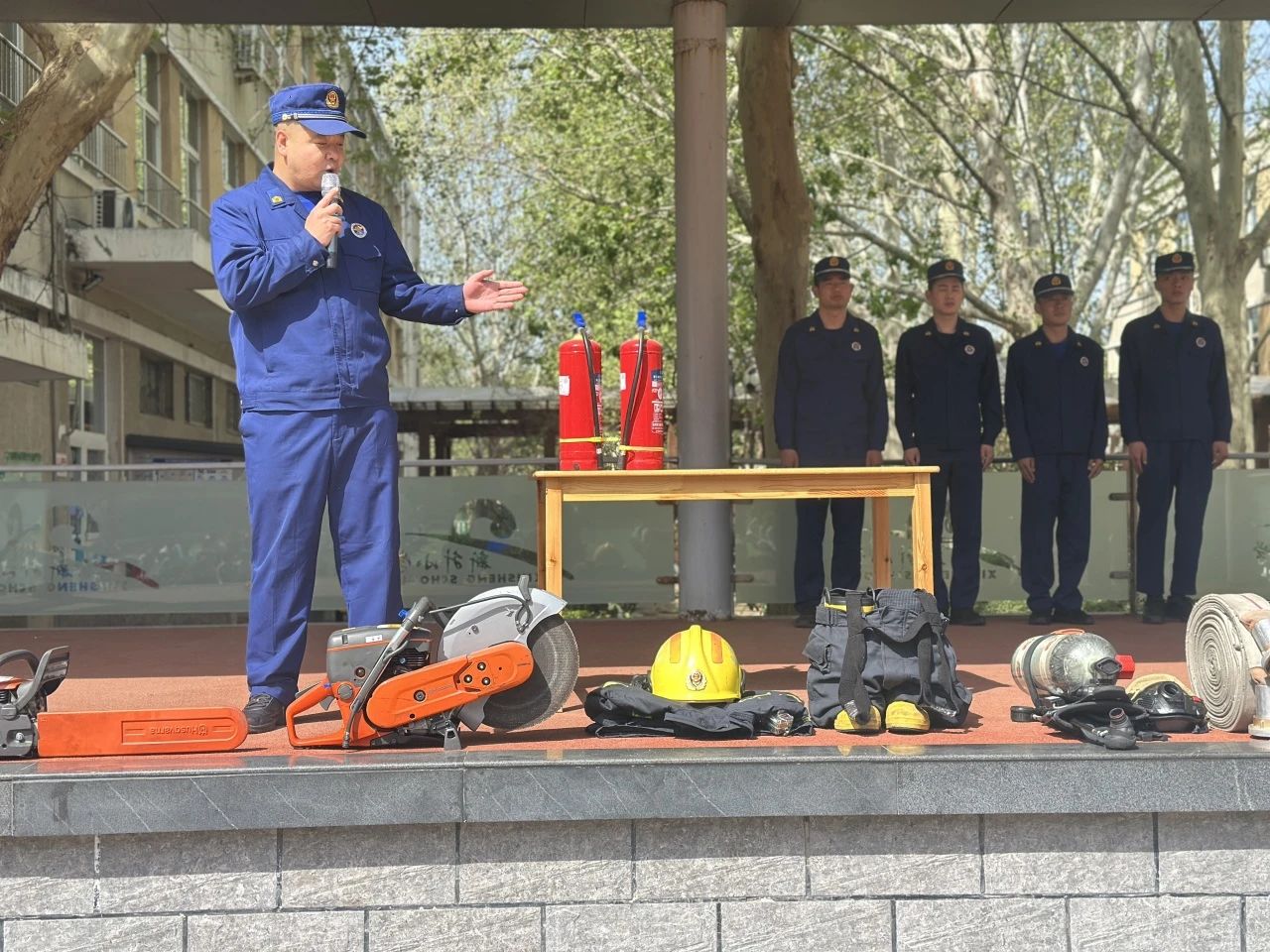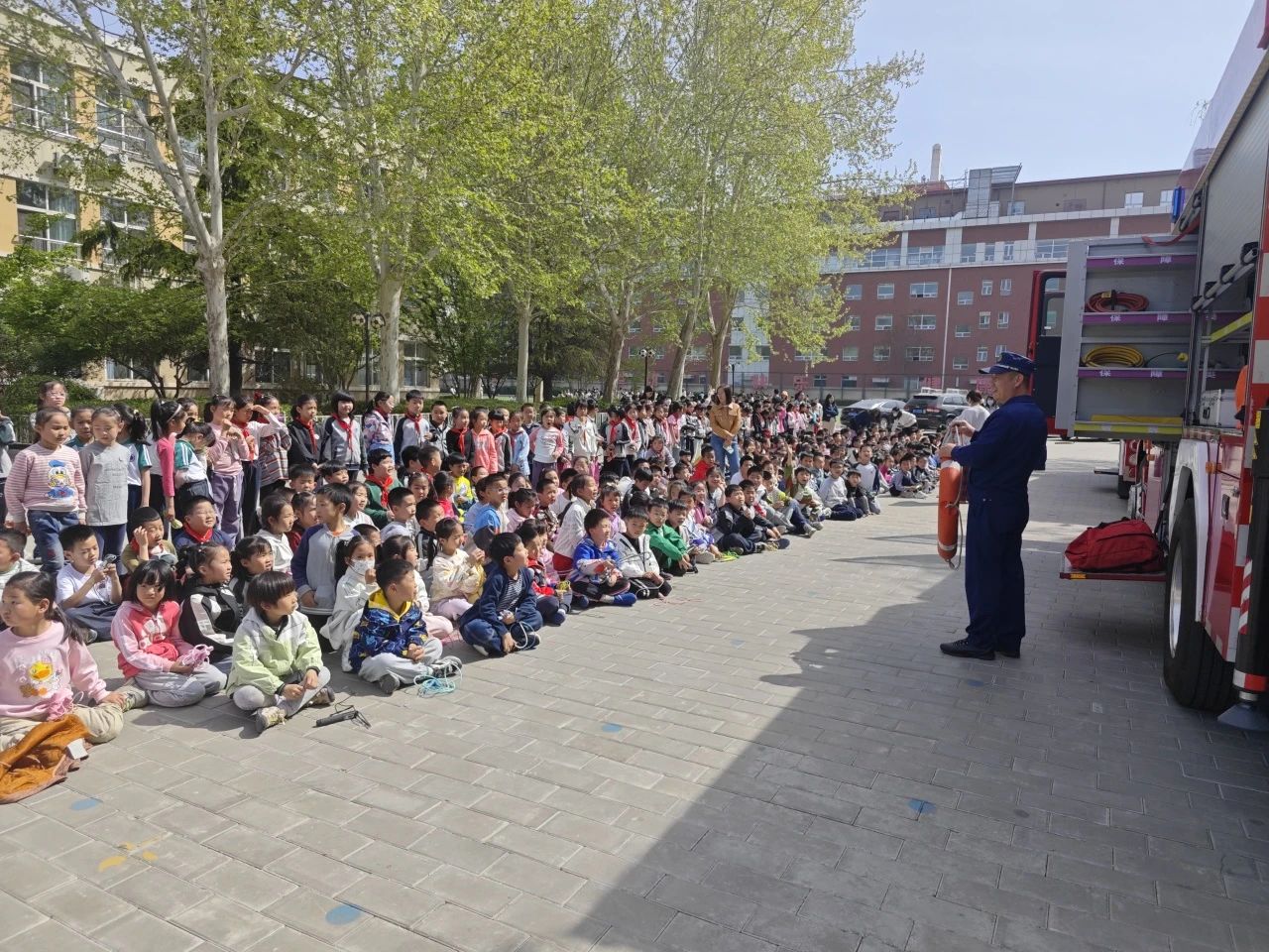 消防員結(jié)合校園安全特點,講解了火災成因、火場逃生技巧等基礎(chǔ)知識,并通過現(xiàn)場展示滅火器、破拆工具、防護服等救援裝備、零距離接觸消防車的體驗。本次安全教育與實踐結(jié)合,為學生撐起一片平安成長的天空。