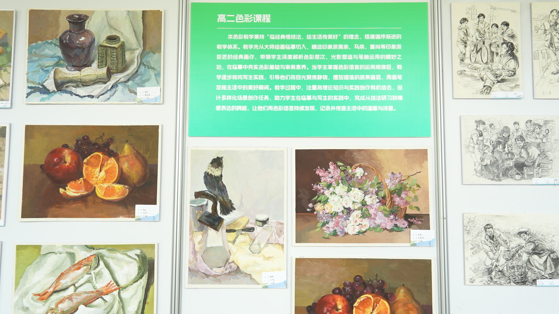 此外,展廳內(nèi)循環(huán)展播畢業(yè)學(xué)子的視頻作品及高一、高二同學(xué)的美術(shù)史知識(shí)分享;160余幅春季寫生佳作走進(jìn)社區(qū),既為“學(xué)子回家”活動(dòng)增添藝術(shù)氛圍,也積極發(fā)揮學(xué)校美育輻射社區(qū)的社會(huì)效應(yīng),讓藝術(shù)之美從校園延伸至家園。