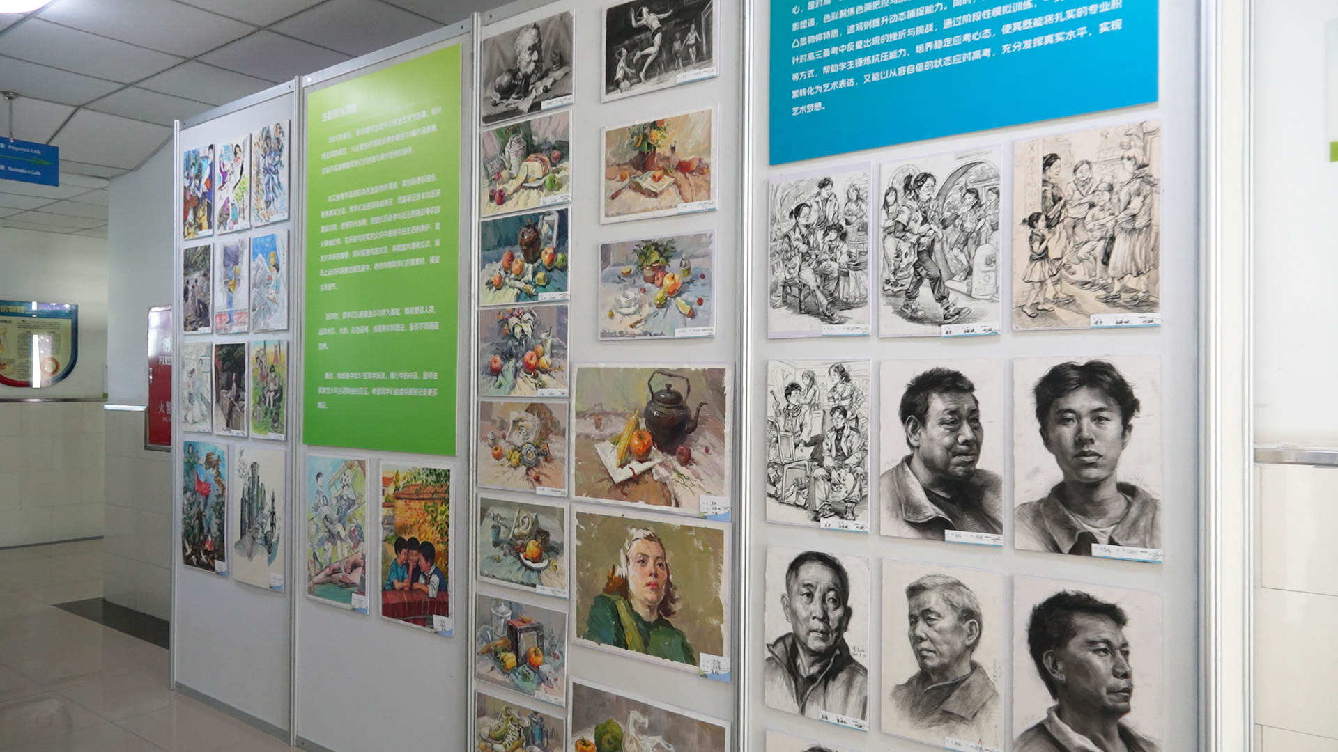 基礎(chǔ)造型展區(qū):集中陳列高一至高三學(xué)生的素描、色彩與速寫作品,生動(dòng)展現(xiàn)不同學(xué)段學(xué)生的學(xué)習(xí)風(fēng)貌——高一學(xué)子的作品充滿朝氣與大膽嘗試,高二學(xué)生的作品彰顯扎實(shí)功底,高三學(xué)生的作品則體現(xiàn)精湛技藝與獨(dú)特藝術(shù)思考,堪稱學(xué)校美術(shù)專業(yè)教育的精彩縮影。展區(qū)內(nèi)重點(diǎn)呈現(xiàn)了豐臺(tái)區(qū)28屆藝術(shù)節(jié)中該校高一高二學(xué)生的獲獎(jiǎng)作品,其中既有致敬抗日戰(zhàn)爭(zhēng)暨世界反法西斯戰(zhàn)爭(zhēng)勝利80周年的歷史題材佳作,以藝術(shù)筆觸回望崢嶸歲月;也有描繪豐臺(tái)區(qū)發(fā)展新貌的現(xiàn)實(shí)題材作品,歌頌故土變遷。