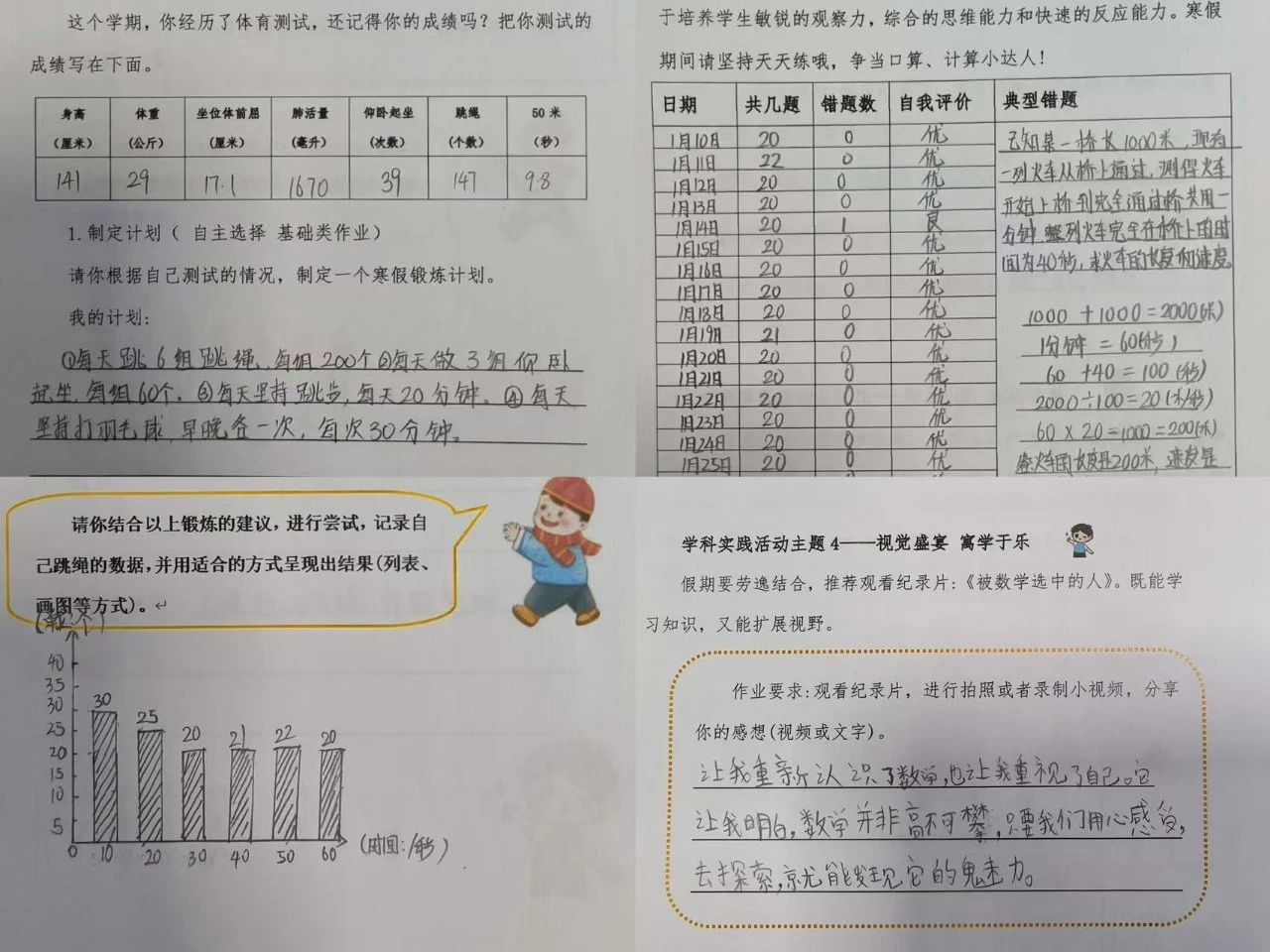 三年級(jí)的同學(xué)們寒假數(shù)學(xué)任務(wù)趣味滿滿!首先是制作活動(dòng)年歷,挑選喜歡的樣式,動(dòng)手標(biāo)上2025年的月份、日期,還能裝飾一番,讓它成為時(shí)光小助手。另外,還制作了關(guān)于“小數(shù)的初步認(rèn)識(shí)”數(shù)學(xué)小報(bào),收集生活中的小數(shù),如超市價(jià)格標(biāo)簽,配上解釋,圖文結(jié)合展現(xiàn)小數(shù)的魅力。