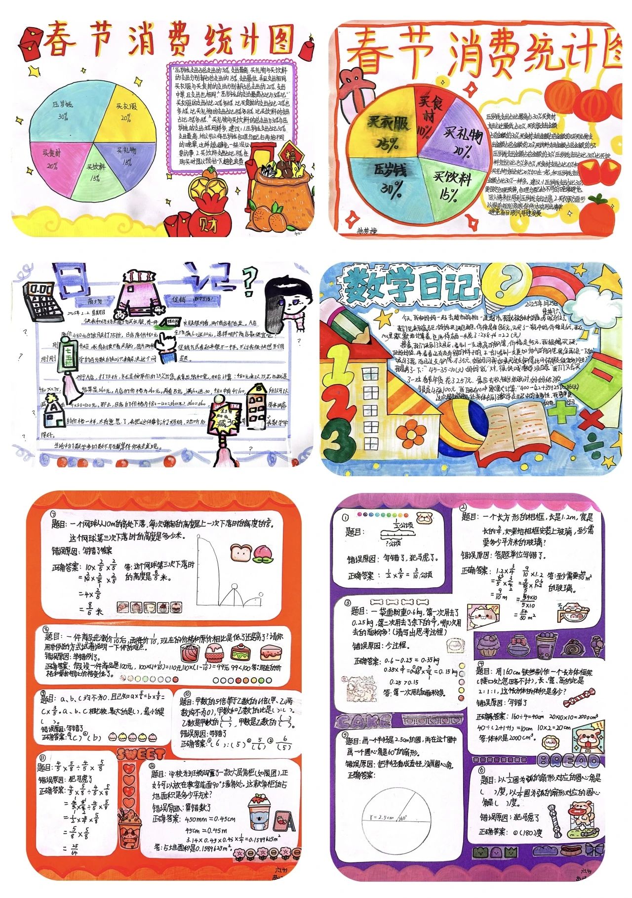 六年級(jí)的同學(xué)們化身為“家庭采購(gòu)小管家”,記錄下自家“年貨購(gòu)物清單”,并繪制統(tǒng)計(jì)圖。從數(shù)據(jù)收集、整理與分析到創(chuàng)意的巧妙展示,同學(xué)們感受到了數(shù)學(xué)與日常生活的緊密關(guān)聯(lián)。還有一些孩子帶來(lái)了充滿創(chuàng)意與智慧的“長(zhǎng)方體、正方體、圓柱制作”實(shí)踐作品。從設(shè)計(jì)到制作,孩子們用棉線、卡紙、圓規(guī)等工具,親手制作出一個(gè)個(gè)充滿巧思的立體模型。他們不僅需要計(jì)算相關(guān)數(shù)據(jù),還通過(guò)線與面的搭建讓2D圖形轉(zhuǎn)化成3D幾何圖形。每一件作品都是數(shù)學(xué)與藝術(shù)的結(jié)合,展現(xiàn)了孩子們的動(dòng)手能力與空間想象力。