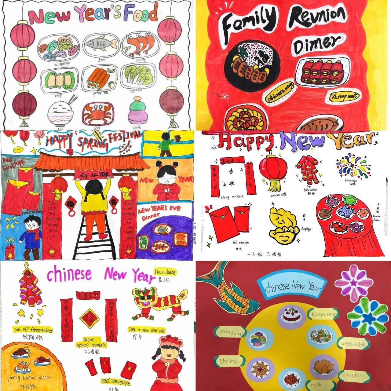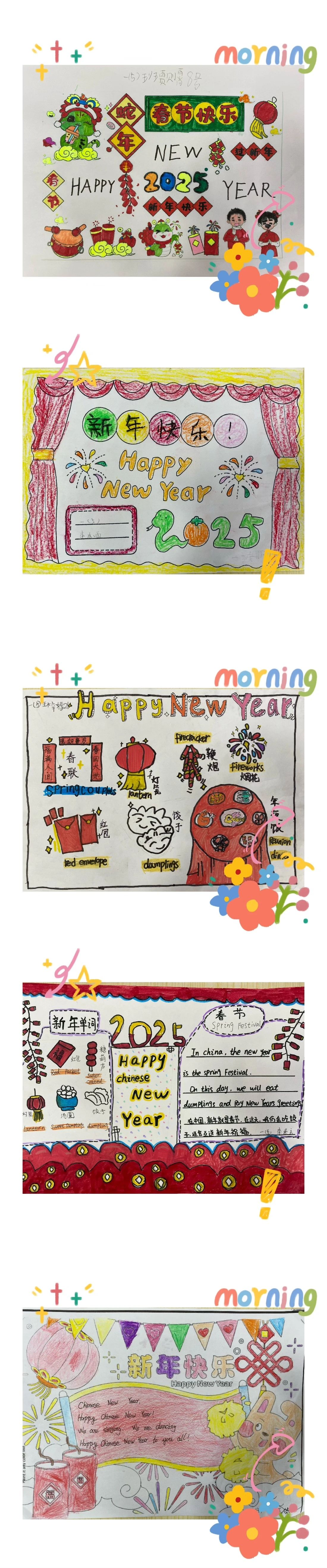 我們組織一年級小朋友制作英語春節(jié)小報,把英語學(xué)習(xí)和傳統(tǒng)節(jié)日結(jié)合起來,激發(fā)孩子們的學(xué)習(xí)興趣。同學(xué)們都很積極,小報內(nèi)容豐富,有春節(jié)習(xí)俗的英語表達(dá),像 “Happy Chinese New Year”,還配上鞭炮、福字等繪畫,特別可愛。這次活動讓孩子們既了解了春節(jié),又提升了英語運用能力。
