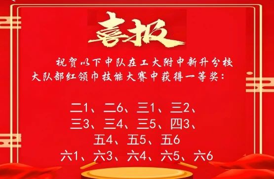 經(jīng)過激烈地角逐,比賽結(jié)果終于揭曉。以下中隊(duì)成績脫穎而出,榮獲少先隊(duì)系紅領(lǐng)巾比賽一等獎。這些中隊(duì)整體精神風(fēng)貌出色,操作規(guī)范,展現(xiàn)了紅領(lǐng)巾的風(fēng)采。
