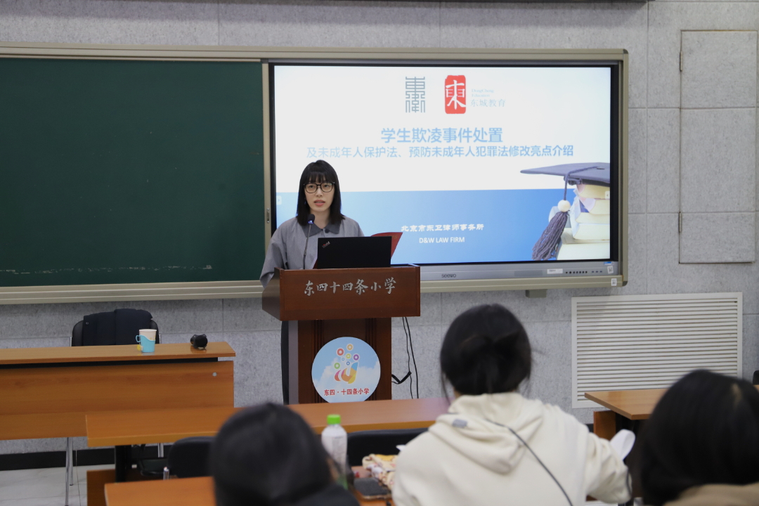 為進(jìn)一步提升全體教師的法律意識和應(yīng)對能力,東四十四條小學(xué)特別邀請北京市東衛(wèi)律師事務(wù)所合伙人、北東學(xué)區(qū)法律顧問、學(xué)校法治副校長王力律師,為全體教師帶來了一場關(guān)于《學(xué)生欺凌處置及兩法修改亮點解讀》的專題培訓(xùn)。此次培訓(xùn)是學(xué)校加強(qiáng)校園安全管理、提升教師專業(yè)素養(yǎng)的重要舉措,體現(xiàn)了學(xué)校對營造安全、健康校園環(huán)境的高度重視。